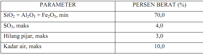 Suatu bahan galian diklasifikasikan sebagai teras/puzolan alam apabila mempunyai komposisi kimia seperti yang disyaratkan oleh ASTM C 618-78, yaitu :